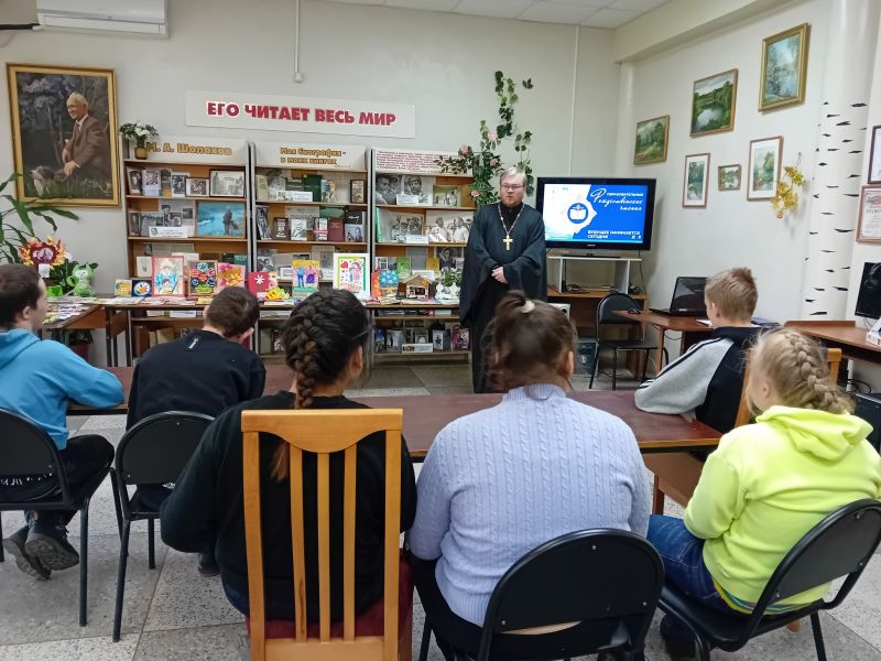 Для ребят мы приготовили мероприятие – «Будущее начинается сегодня», которое было приурочено к Рождественским чтениям и посвящено будущему человечества, новому поколению, нравственным ценностям. На наши Рождественские чтения, мы пригласили настоятеля прихода Святой Троицы, иерея Виктора. Батюшка объяснил детям значение Рождественских образовательных чтений и показал ролик на эту тему.