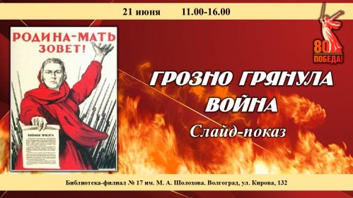 Накануне дня памяти и скорби на абонементе библиотеки в течение дня будет демонстрироваться слайд-показ «Грозно грянула война».