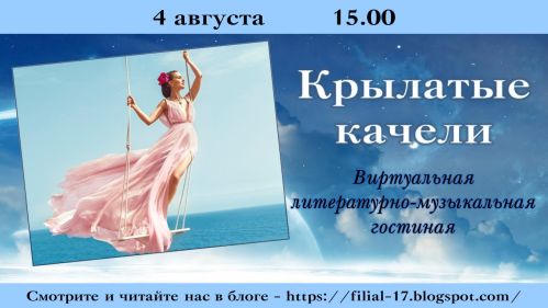 Ждём вас 4 августа в 15.00 в нашей виртуальной гостиной «Крылатые качели». Место встречи – блог нашей библиотеки!