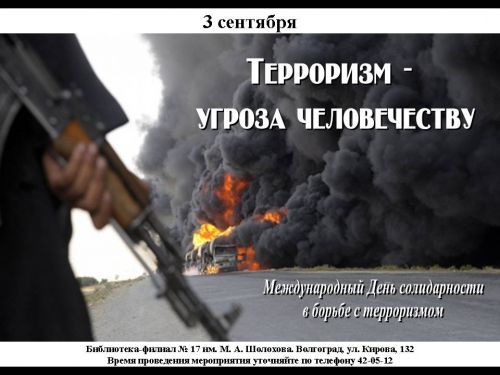 Мы приглашаем 3 сентября на мероприятие «Терроризм – угроза человечеству», которое пройдёт в читальном зале библиотеки.