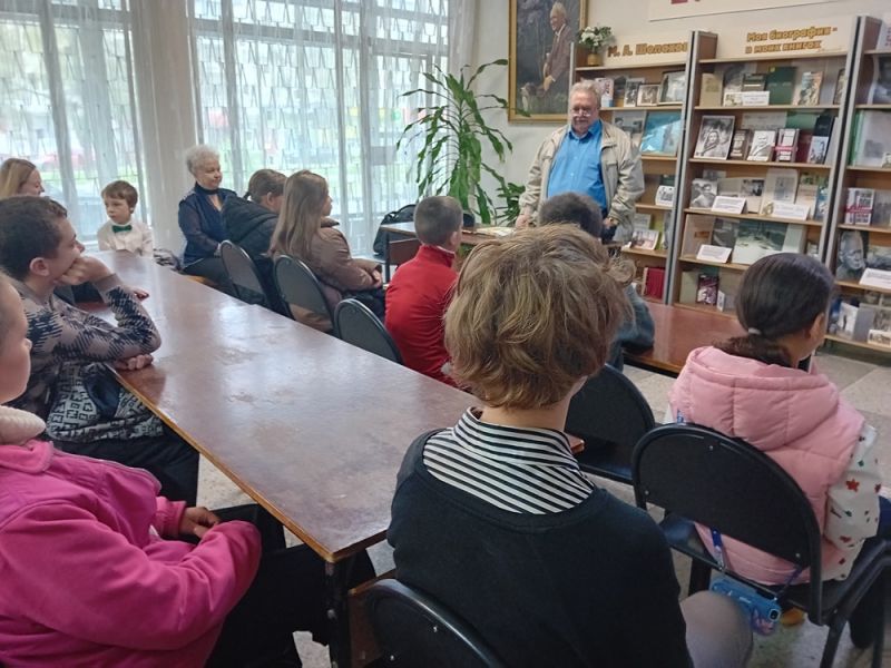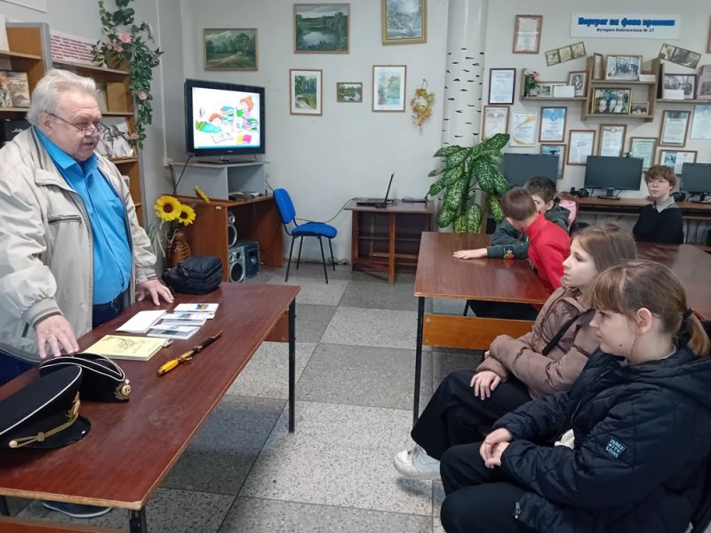 Сотрудники библиотеки организовали встречу детей школы-интерната «Надежда» с детским поэтом Владимиром Алексеевичем Толмачевым. Владимир Алексеевич не литератор, не профессиональный писатель. Он самородок. По профессии он военный штурман морской авиации. На встречу с детьми принес с собой кортик, морскую пилотку и фуражку. То, что осталось от основной профессии. Владимир Алексеевич рассказал ребятам с какого возраста начал слагать поэтические строчки, выражать свои детские впечатления в стихотворной форме. Ребята расспрашивали автора, что такое вдохновение, как он находит сюжеты для своих произведений, увлеченно слушали стихи в авторском исполнении. Своё первое стихотворение помнит наизусть. Писал стихи в школе, потом, когда поступил в летное училище, и уже будучи военным штурманом противолодочной авиации на Дальнем Востоке, написал строевую песню «Наша эскадрилья».