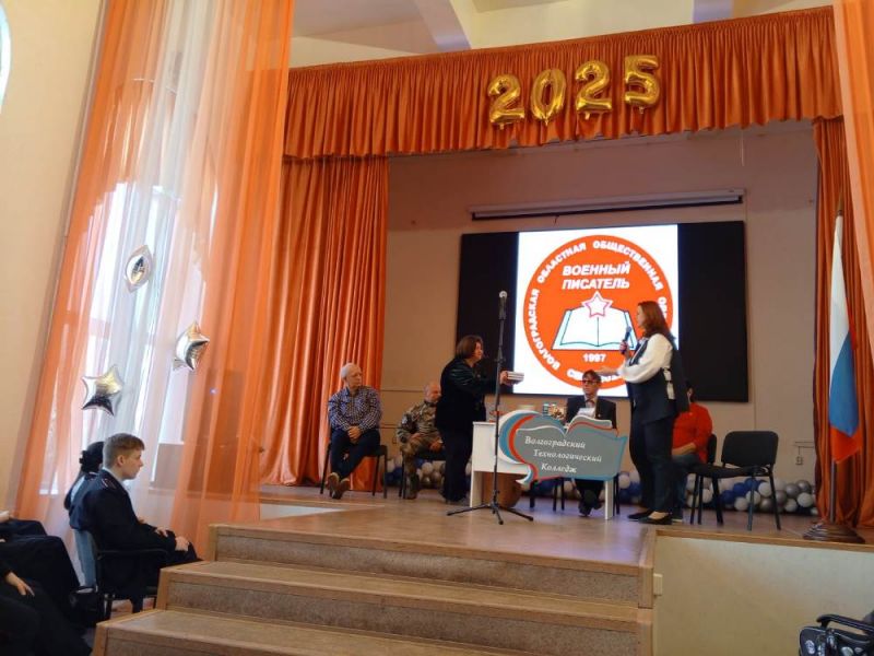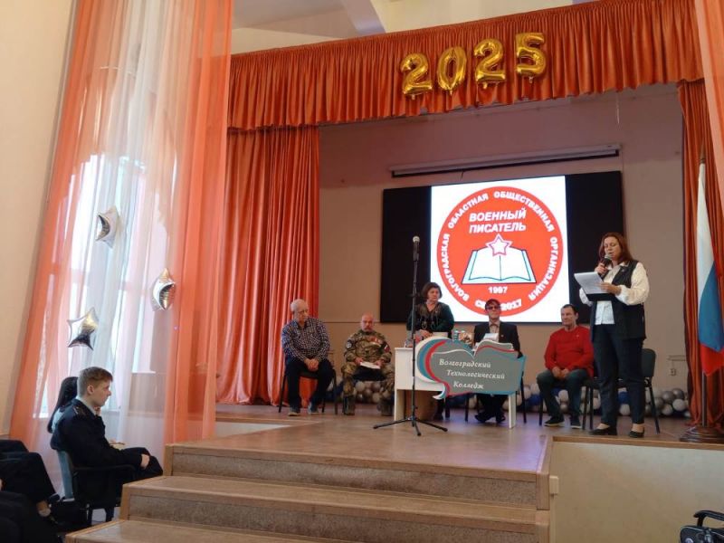 18 ноября в Волгоградском технологическом колледже прошла встреча студентов с членами ВООО «Союз военных писателей», в качестве спикера которой выступила заместитель директора колледжа и тоже член «Союза» Елена Владимировна Аболишина.