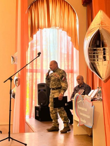 Абдульмахмуд Рахимов признался, что чаще всего пишет детские стихи и прочитал два из них, а потом поделился стихотворением-победителем конкурса «Герои Великой Победы» - «Выпускникам 1941 года», прочитал свои свежие стихи «СВОи» (про пса Балбеса, защитившего солдат от дрона) и «Письмо».