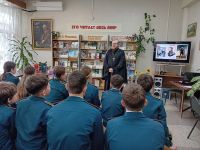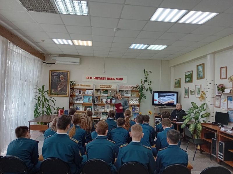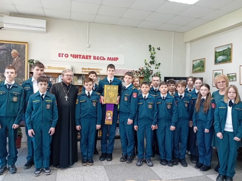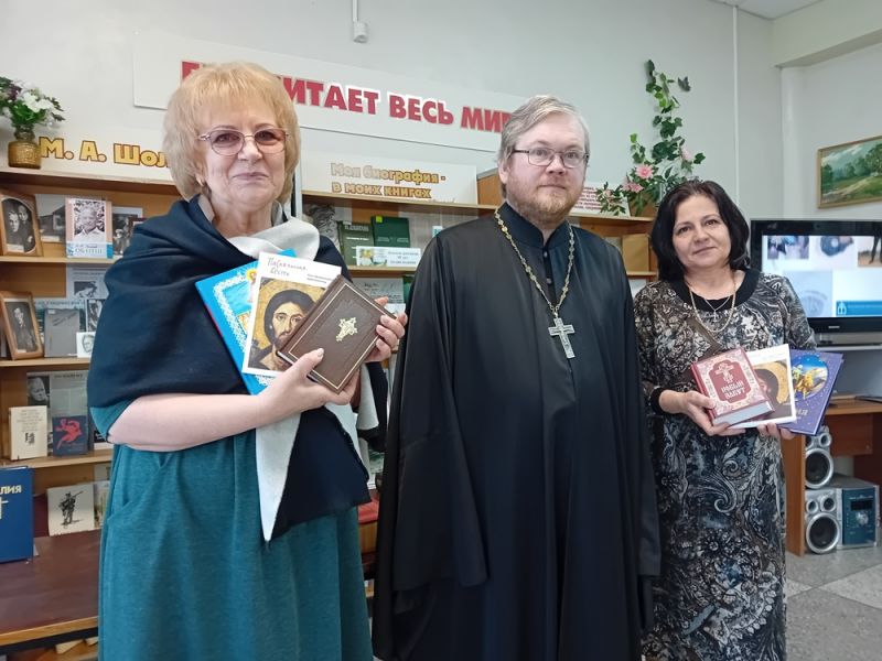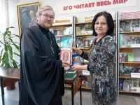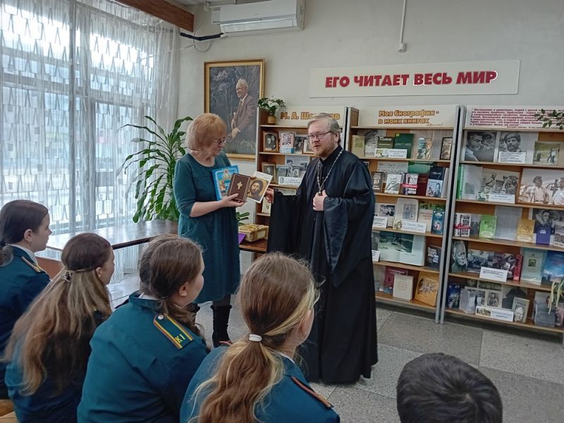 В библиотеке-филиале № 17 им. М. Шолохова состоялась встреча школьников из 7 «б» класса МОУ СОШ № 56 с настоятелем прихода Троицы Иереем Виктором Иващенко.