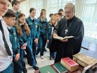 В ходе беседы Батюшка рассказал ребятам о значении книги в жизни человека, о том, что чтение доброй, качественной литературы развивает ум, обогащает душу и помогает человеку находить верные ориентиры в жизни. Библия – одна из самых издаваемых и переводимых книг в истории человечества. Она оказала огромное влияние на мировую культуру, литературу, искусство и философию. Благодаря многочисленным переводам и распространению, Библия стала известна народам всех континентов и по сей день остается живым источником духовной мудрости.