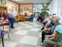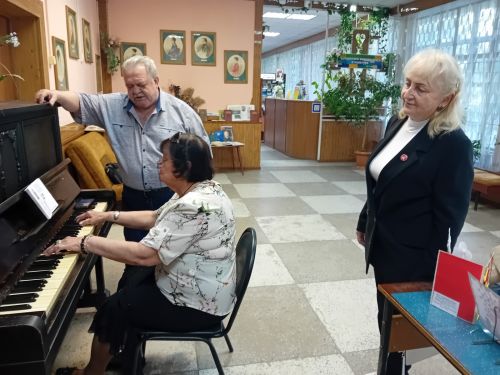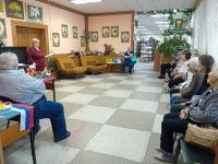 Вторая часть нашей встречи была посвящена творческим людям нашего Кировского района, которые были приглашены и присутствовали в нашей библиотеке. Это: Арстанова Л.Г., Коломейцева З.В., Трушин П.Н., Толмачев В.А. Эти люди наши читатели, гости наших встреч. Они пели романсы, читали свои стихи, пели свои песни. Гости после проведенного мероприятия еще долго не расходились и выразили желание чаще собираться в нашей музыкальной гостиной.
