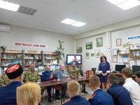 После основной части встречи попросила слово, приглашённая на встречу библиотекой, председатель ВООО «Союз военных писателей» З. В. Коломейцева. Речь зашла о «Союзе военных писателей» и о его работе – выпуске сборников «За нас», которые уходят «за ленточку» для моральной поддержки бойцов, встречах со школьниками, развитии их способностей, о том, что в альманахе «Волжанин», который выпускает Союз, есть рубрика «Проба пера», в которой публикуются детские стихи и рассказы. На встрече присутствовал наш юный читатель Артём Петросян, у которого в очередном «Волжанине» появилась первая публикация. Отдельно она обратилась к участникам СВО, предложив и им поучаствовать в создании «летописи» нашей страны, записав свои воспоминания.