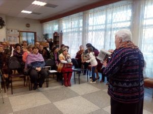 Каждой песне предшествовал рассказ об исторСвеии ее написания и других интересных моментах. Немало интересного рассказала для собравшихся Орешкина Лариса Павловна (бывший преподаватель музыкальной школы искусств № 1 Кировского района), поведав о личных встречах с композитором во время ее приездов в Волгоград и о том, как Пахмутова и Добронравов подарили в один из таких приездов песню ее детскому ансамблю – «Волга-вольница». Орешкина Л.П. исполнила эту песню для всех.