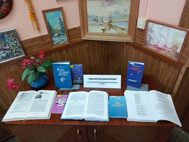 Книжная выставка «Город мой над рекой великой» оформлен на абонементе к 90-летию со дня рождения Волгоградского писателя Льва Сергеевича Кривошеенко, члена Союза писателей России, лауреата Всероссийской литературной премии «Сталинград».