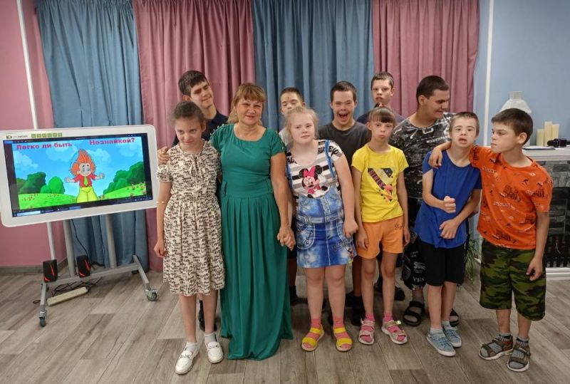 Воспитанники реабилитационного центра пытались вслед за Незнайкой находить правильную рифму в стихотворениях, смеяться над неудавшимися рисунками – шаржами главных героев с улицы Колокольчиков, выбирать понравившийся музыкальный инструмент, отгадывали музыкальные инструменты по звучанию. И лишь потом ведущая этой игры Васильева Светлана открывала на экране соответствующую картинку. Незнакомым для ребят оказалось лишь звучание гуслей.