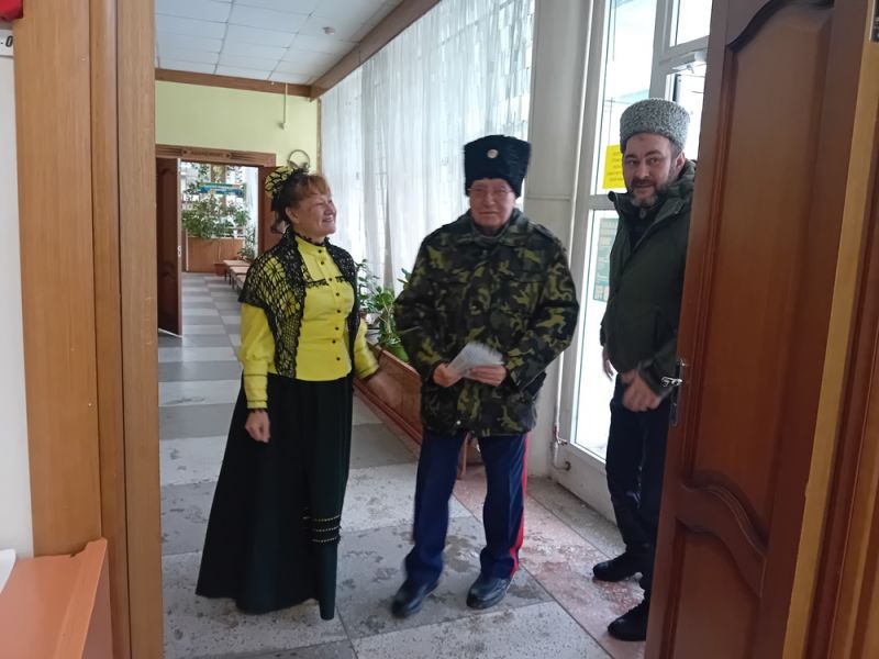 Было отмечено, что, несмотря на все испытания, выпавшие на долю казачества, ему удалось сохранить свою культуру. Последовал рассказ о появлении иконы Августовской Божьей Матери («Августовская Победа»), два дореволюционных списка которой были обнаружены на территории Волгоградской области (одна из них находится в Кременском монастыре, вторая в храме Иоанна Предтечи). Ребята получили возможность увидеть презентацию, посвящённую этой иконе, звуковым рядом которой послужил романс на стихотворение Николая Туроверова «Знамя».
