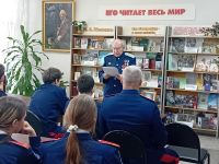 Прозвучали слова благодарности от преподавателя МОУ СШ № 110 в адрес казачьей организации и библиотеки за интересное мероприятие.