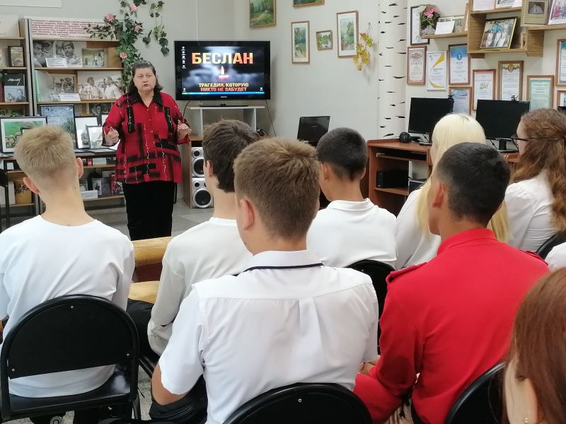 Урок памяти для учащихся 10 «А» класса МОУ «Лицей № 10», который прошел в читальном зале библиотеки, начался с песни «Мама, очень хочется пить». Ведущий библиограф М. Н. Урусова обратила внимание на то, что в музей, посвящённый Бесланской трагедии, посетители приносят бутылочки воды – в память о погибших там детях.