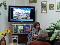 Началась встреча с клипа-попурри песен о Тянь-Шане, видеорядом к которому служили виды этого горного массива и озера Иссык-Куль.