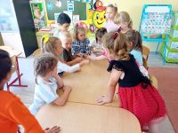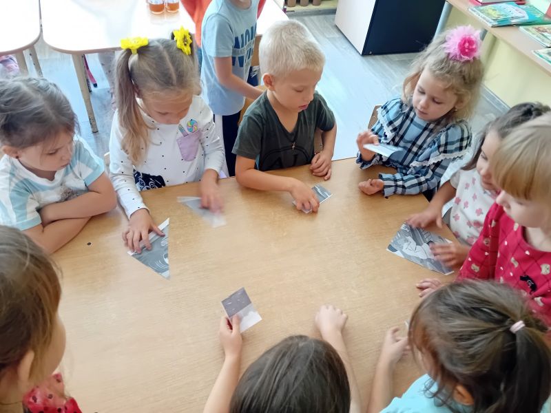 Вторая часть мероприятия прошла в детском саду. Её вела Инна Олеговна Дрыжак. В группе Инна Олеговна читала детям сказки Пушкина А.С., провела викторину по сказке «Золотая рыбка», а в завершении детям предложили игру «Рестовраторы», где они восстанавливали иллюстрацию к сказкам по разрезанным деталям.