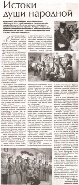 9. В поддержку чтения // Казачий круг. – 2014. – 25 апреля. – С. 8.