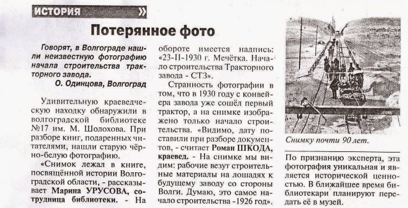 Среди дарственных книг библиотекари обнаружили фотографию строительства Сталинградского Тракторного завода с пометками музея или архива на обороте.