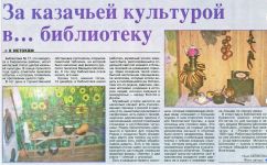 О работе библиотеки по сохранению казачьих традиций, пропаганде среди жителей района истории, фольклора, казачьего быта.