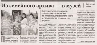 51. Иволгина, Е. Из семейного архива – в музей / Е. Иволгина // Городские вести. – 2014. – 21 августа. – С. 5: фото.